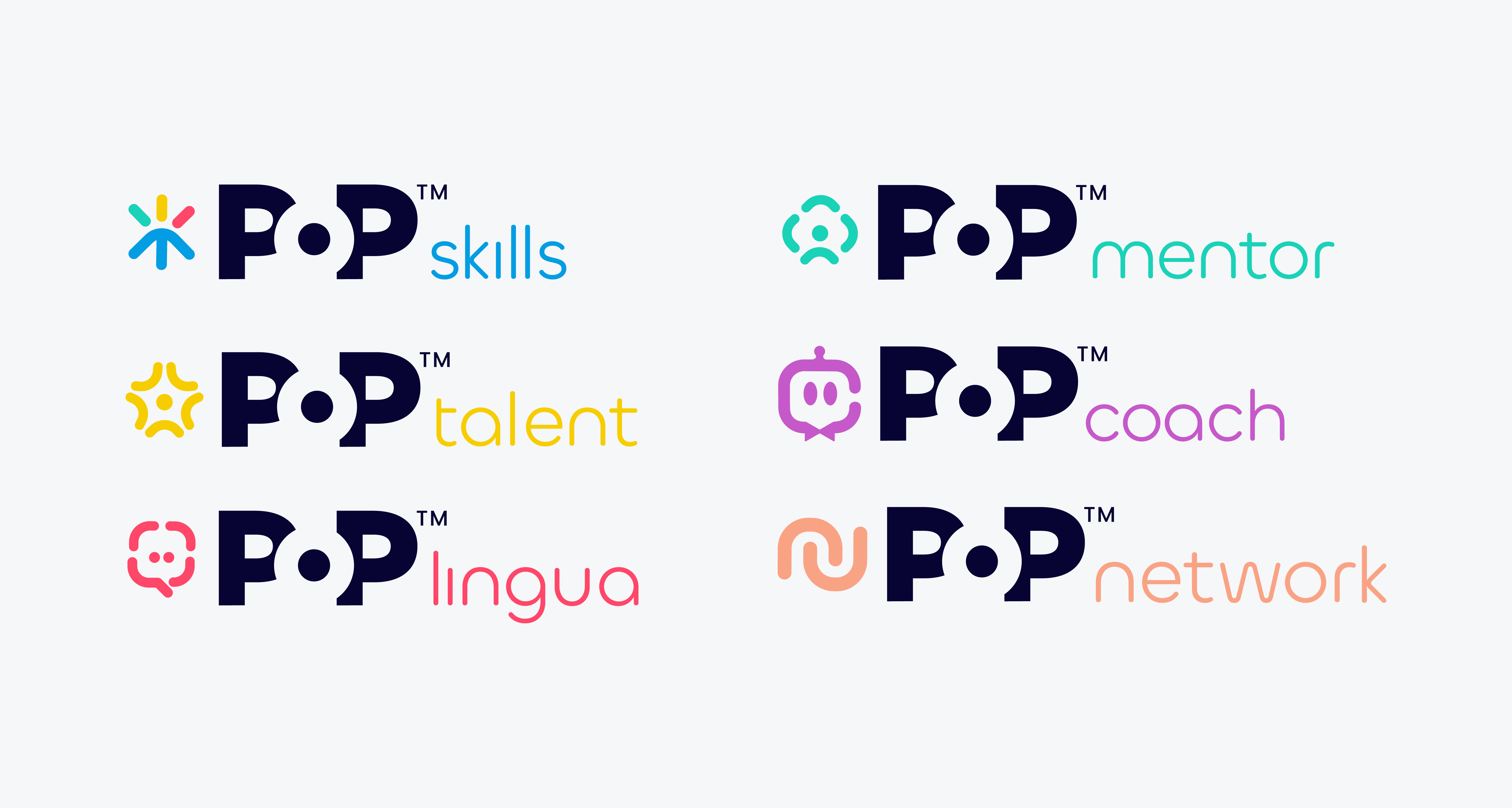 Chaque marque POP couvre un aspect du parcours professionnel. Elles sont conçues pour fonctionner ensemble.